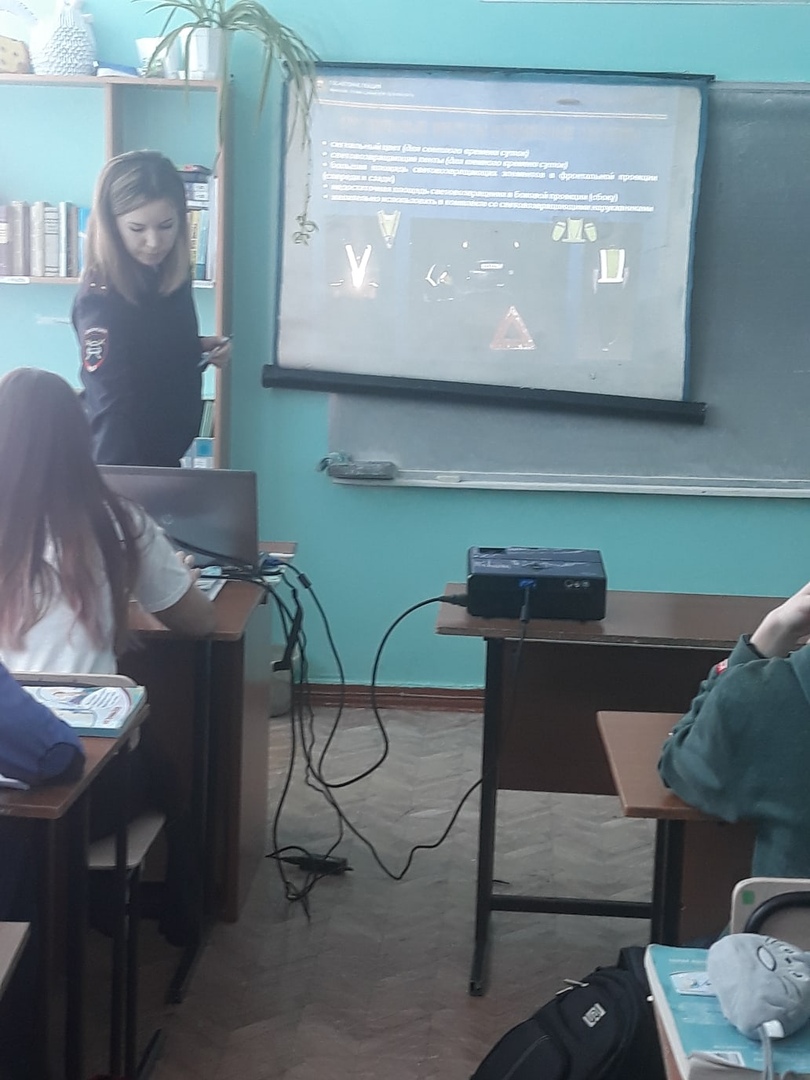 Классный час в 10-11 классах на тему "Светоотражающие элементы" и "Ответственность пешеходов по ПДД" с участием инспектора ДПС Абзелиловского района Давлеткуловой И.И.