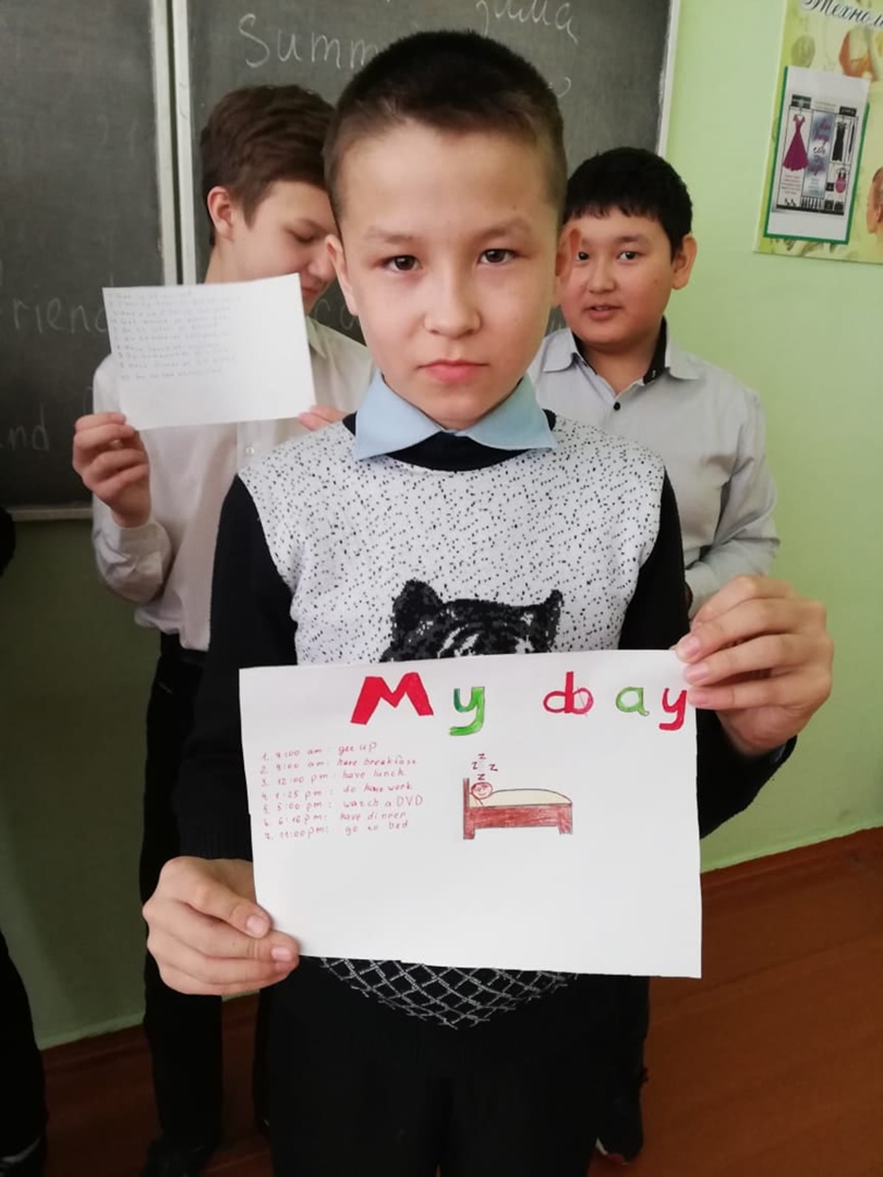 Защита проектных работ в 5А классе на тему "Мой распорядок дня". Провела учитель английского языка Ишкильдина Гульдар Вареевна